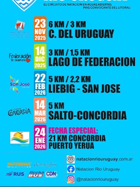 El próximo domingo 23 a las 10Hs en la ciudad de Concepción del Uruguay se pondrá en marcha la 16° temporada del CIRCUITO DE NATACIÓN EN AGUAS ABIERTAS DEL RÍO URUGUAY.